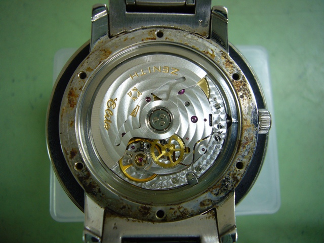 ケースと裏蓋のサビが酷く機械も極度の油切れ状態