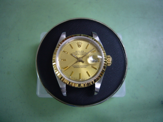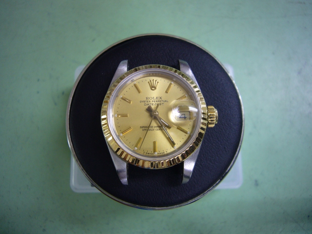 2016年2月5日 / 最終更新日時 : 2019年11月3日 complete-watch ロレックス修理履歴 Rolex DateJust Ref.69173のオーバーホール Rolex DateJust Ref.69173のオーバーホール オーバーホール前の画像 ゼンマイ切れによる止まり症状で持ち込まれましたが、 竜頭のねじ込みが浅く防水不良も起きておりました。 オーバーホール後の画像 ゼンマイ以外の内装部品は無事でしたが、竜頭とチューブ 交換を要しました。ご予算を抑えたいとの事で再生竜頭 (ねじ山の残っている中古部品)を使用しましたが、 現在は入手が困難となっております。 総費用50,000円(税別)ポリッシュなし、2年保証品