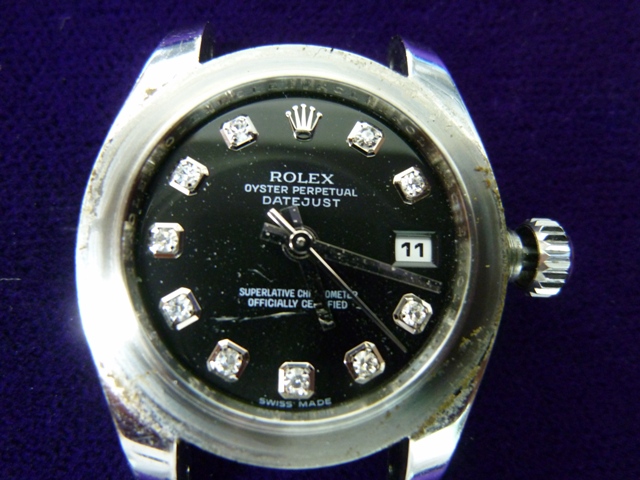 エナメルの黒文字盤はホコリやキズが特に目立つ