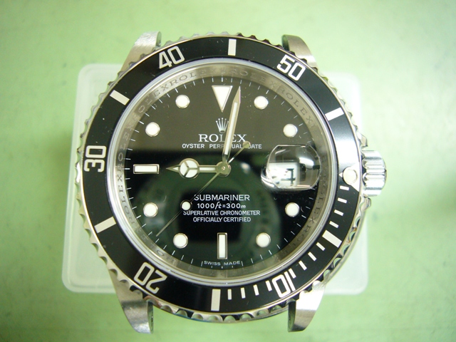 2017年7月7日 / 最終更新日時 : 2019年11月1日 complete-watch ロレックス修理履歴 ロレックスサブマリーナデイトRef.16610不動修理 ロレックス・サブマリーナデイトRef.16610突然不動の修理 修理前の画像 V品番のサブマリーナデイトですが、突然の止まり 症状が出てお持込くださいました。 原因はゼンマイ切れですがその他の部品にダメージ は無さそうです。 修理後の画像 オーバーホールと各パッキン・ゼンマイ交換で防水 性能も含めて機能回復しました。 外装(ケースとブレス)は使用キズが少なかったため、 ポリッシュは行わず超音波洗浄までに留めました。 総費用33,000円(税別)2年保証品